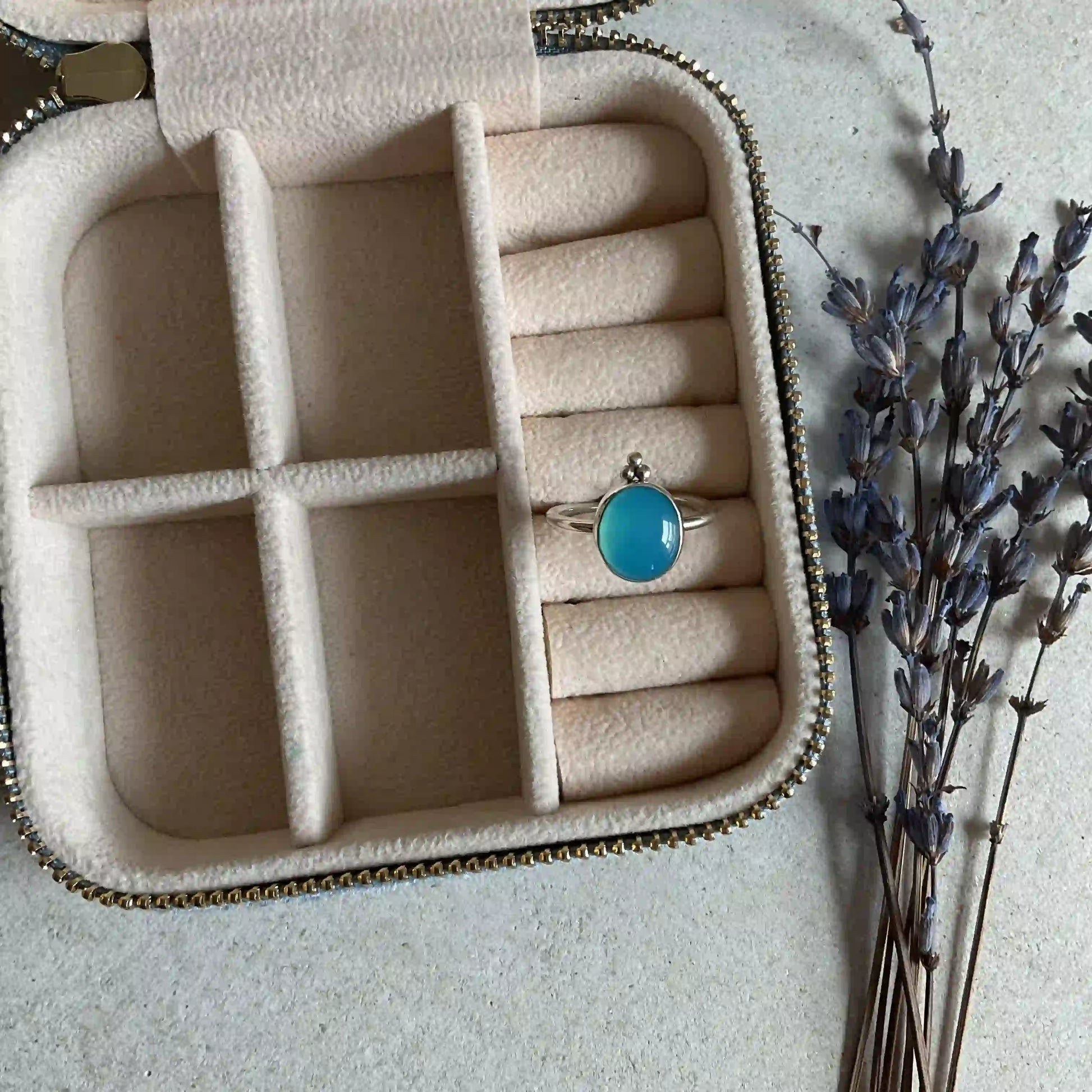Adjustable 925 Sterling Silver Ring with Blue Agate,